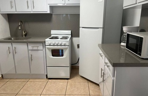 Also includes refrigerator whirlpool and a electric stove with oven, microwave and a coffeemaker bathroom with a comfortable shower with showerhead, every bedroom with air conditioners.