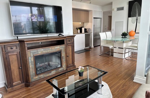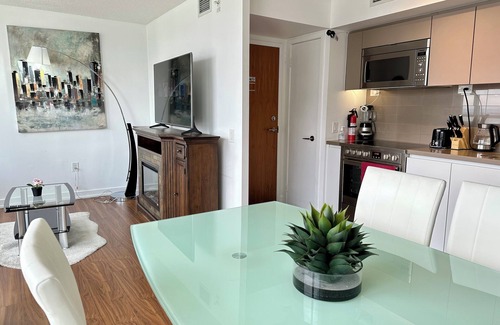 2 full bedrooms, 2 bathrooms. . Please bring valid ID, we only issue the keys to the guest booking. Enjoy the CN Tower views from Bedroom/Living room/dining room and balcony.