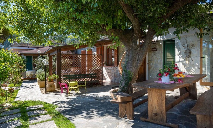 Agriturismo "San Giuseppe" is a charming vacation rental situated in a serene, elevated position atop a hill, surrounded by lush meadows and trees. The property boasts a well-maintained terraced garden, a refreshing swimming pool (6 x 5 m, open seasonally from April 1st to November 26th), and a range of amenities including a tennis court, table tennis facilities, a patio, terrace, garden furniture, and a barbecue area. Enjoy the convenience of on-site parking, Internet WiFi, an EV charging station, and the option to avail of an installment plan for your stay.