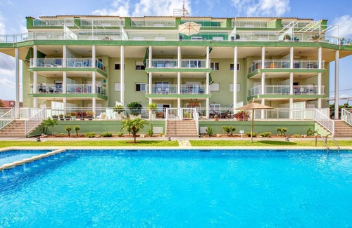 Introducing Marina Park, a very modern and luxurious apartment complex located just 3 km from the heart of Els Poblets and 11 km from Denia, Spain. Nestled in the tranquil Les Deveses district, this property offers a serene and sunny atmosphere, situated merely 30 m from the sea and the beach. Enjoy shared access to a spacious, fenced garden with lush lawns and shady trees, as well as an angular swimming pool (14 x 6 m, depth 80 - 210 cm) available seasonally from January 1st to December 31st. A children's pool and outdoor shower are also provided. Convenience is at your doorstep with a shop just 100 m away, restaurants within 120 m, a café 130 m away, and a pub garden only 100 m from the property. Additionally, a bus stop is conveniently located 80 m away. Please note that the owner does not accept youth groups for this vacation rental.