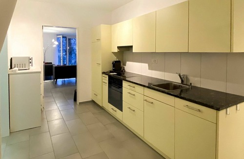 The apartment is well-equipped with essential amenities for a comfortable vacation stay. The open kitchen includes an oven, dishwasher, 4 ceramic glass hob hotplates, toaster, kettle, microwave, electric coffee machine, Capsules for coffee machine (Nespresso) extra, raclette grill, and fondue Set (cheese). The bathroom features a shower and toilet. Floor heating is available throughout the apartment for your comfort. Outdoors, you can enjoy a large 20 square meter terrace, partly roofed, with terrace furniture, an electric barbecue (portable), deck chairs (2), and a box-room.