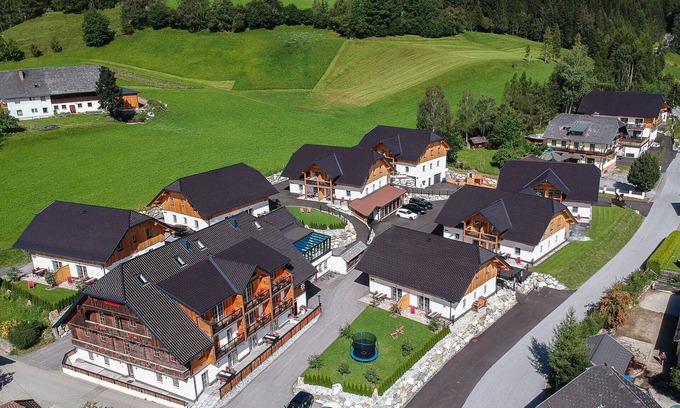 You are seeking a cozy, comfortable vacation rental called the "Edelweiss" holiday village in Mariapfarr, Austria. This property offers amenities such as a yard, internet WiFi, and parking. It comprises 9 houses and 20 apartments, providing a tranquil setting on the outskirts of town, just 5 km from the center of Mariapfarr and 100 m from the edge of the forest.