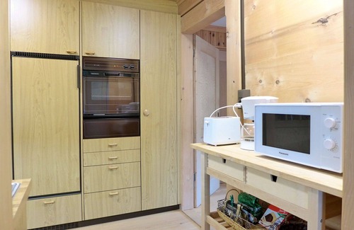 You will be staying in a 7-room maisonette that spans across two levels and covers an area of 170 square meters. The spacious and cozy living area features wooden furnishings and sloping ceilings in certain areas. The main living room measures 25 square meters and is equipped with a digital TV and a flat-screen display. Adjacent to the living room is a dining area with a dining table. Both the living room and one of the double bedrooms have access to a balcony. There are two large double bedrooms on the main level, each fitted with a double bed measuring 90 cm in width and 190 cm in length. The open kitchen is well-appointed with an oven, dishwasher, four ceramic glass hob hotplates, a toaster, kettle, microwave, and an electric coffee machine. A shower room with a toilet is also located on this level.