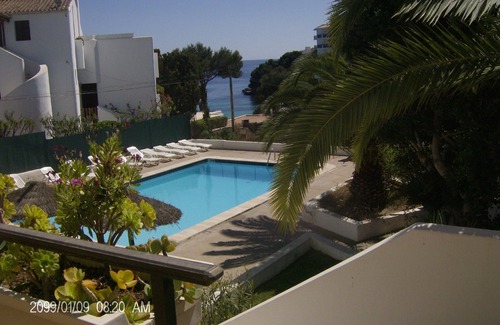 situated in quiet area, beautiful place (you may hear occasional noise) surrounded by pine trees and gardens. Sea views. Sunny terrace, access to a shared swimming pool, a private south facing garden and patio area with sea views. Situated in Cala Ferrera. Cala D´or centre is a 10 minute walk away. One minute from beach and supermarket to restaurants, It is quiet resort, children's playgrounds, etc. Ideal for families and groups of friends .