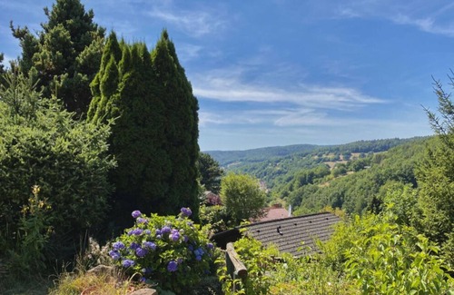 The charming four-star wood block house in the weekend area of Jochenhöhe in Dammbach stands on a 400 m² (not fenced) plot of land with a non-built-up view of the Spessart (400 meters above An.). The south -facing sun terrace invites you to relax. The fully equipped house offers optimal space for three people. On cold days, a wood stove also ensures chubby warmth. The interior and the outdoor area were redesigned in 2019. Aschaffenburg - the Bavarian Nice - can be reached in less than an hour, Robberland and the Churfranken pleasure region are on the doorstep and open up a variety of ways to spend your vacation according to your taste.