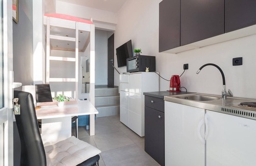 This well-equipped vacation apartment welcomes you in a compact space. The two of you can have a good time here and find everything you need to relax. The terrace becomes your living room, where the view of the sea becomes your TV. Enjoy your evening meal accompanied by beautiful sunsets.