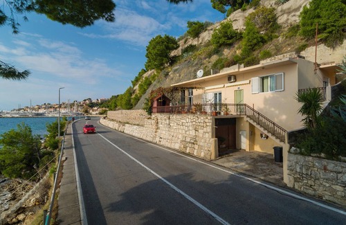 You can also go for a swim. The only thing separating you from the water is the road. Cross it and use a ladder to reach the crystal-clear water. Dive into the waves and enjoy the sun's rays on the surface of the water. Discover the famous Omis Riviera, which welcomes you with beautiful beaches that invite you to relax and enjoy an active vacation with numerous water sports options.
