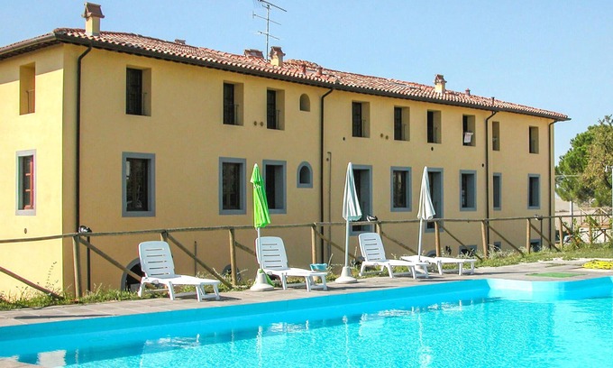 Discover together with your small family or as a couple the beautiful Tuscany and relax in this pleasant vacation apartment. Rustic wooden ceiling beams and furniture create a welcoming atmosphere and invite you to come to rest on vacation. You can relax after your excursions at the shared pool and make the next plans.