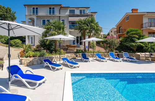 On the first floor of this house there is a nice studio apartment for 2 persons. You have direct access to the garden, where there is a shared terrace and barbecue. In addition, the vacation apartment offers its own terrace. Refresh yourself in the shared pool or enjoy the sun on the sun loungers with your favorite book. The functionally furnished living elements are stylishly linked and will surely please you. For sports enthusiasts, the swimming pool complex in Kantrida has a variety of facilities and Opatija will charm you with its beautiful waterfront.
