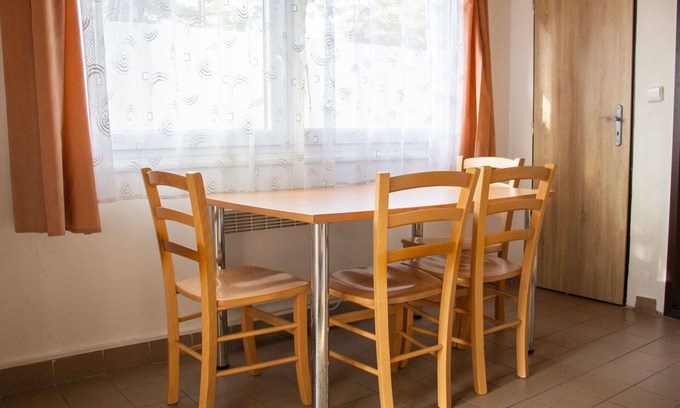 Kemp Stříbrný rybník is a child-friendly holiday village offering a vacation rental experience. It boasts 25 houses within the resort, nestled in the district of Malšova Lhota, just 5 km from the center of Hradec Králové, along a wooded area and overlooking a lake. The property provides amenities such as a yard, Internet WiFi, parking, and an installment plan.