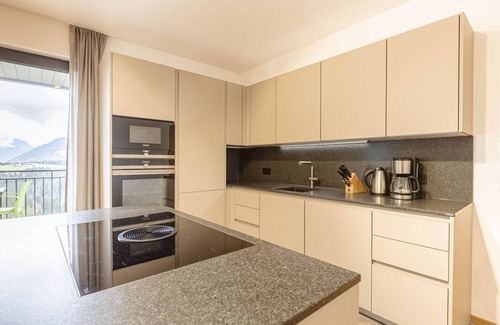 Discover the ultimate in comfort and luxury with our modern 67 m² apartment, perfect for up to 4 guests. This stylish retreat features two elegantly furnished bedrooms, each with plush box-spring double beds, ensuring a restful night’s sleep. The apartment includes two contemporary bathrooms, each equipped with a shower, toilet, and hairdryer for your convenience. The open-plan living and dining area invites relaxation with its cosy seating and flat-screen TV, while offering easy access to either a balcony or terrace, depending on your apartment's location. The kitchen is a chef's delight, fully equipped with cutlery, cookware, a ceramic hob, oven, fridge with freezer compartment, and a dishwasher. Additional amenities include a toaster, kettle, and coffee machine. For your arrival, we provide a small starter set with a dishwasher tab, dishwashing liquid (sample), sponge, garbage bags, cleaning supplies, and a tea towel. A standout feature of the Hideaway Dachstein West is its wellness area on the ground floor. Here, you can unwind in the Finnish sauna and enjoy stunning panoramic mountain views from the heated outdoor infinity pool. Our resort is also pet-friendly, welcoming dogs on request for an additional fee. Enjoy complimentary Wi-Fi throughout the apartment and take advantage of the TennengauPLUS Card, included with your stay, which offers exclusive discounts on local attractions. The communal pool's opening hours are from 16:00 to 19:00 during winter (01.10 - 30.04) and from 10:00 to 18:00 during summer (01.05 - 30.09).