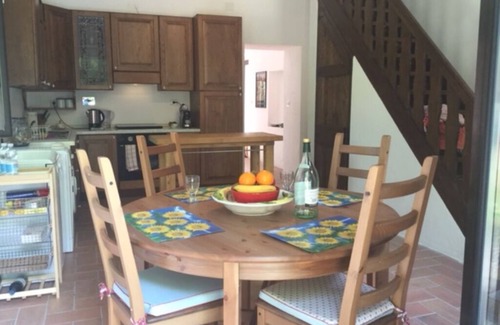 Large kitchen very well equipped, living room, ensuite double bedroom on the ground floor. Double bedroom, twin bedroom and another bathroom on the first floor. Satellite TV, wifi, heating included when needed.