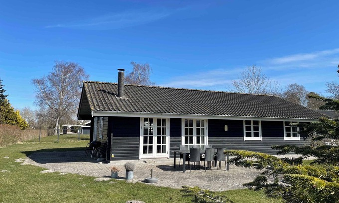 Now, let's delve into the house itself. With three cozy rooms and space for six people, there's plenty of room for the whole family or a group of friends. The spacious bathroom offers both comfort and practical amenities, including a combined washing machine. And the large living area is the perfect gathering spot, where everyone can come together for cozy moments and fun activities. From the living room, doors lead out to the terrace, which enjoys both morning and evening sun, perfect for relaxing moments or outdoor meals. And if the evening gets a bit cooler, fear not, as the house has a cozy fireplace that adds both warmth and atmosphere to your surroundings.