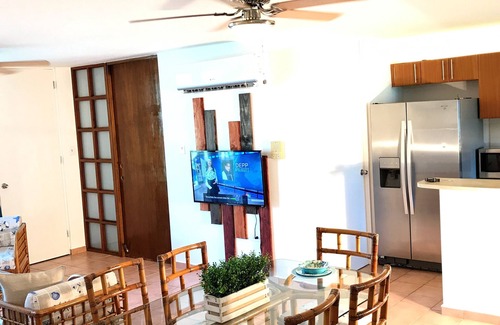 The apartment is a first floor walkup with two balconies, beautiful garden, just right next to one of the condo pools. (One of our complex's pools is under repair since May 29, 2025.) You can walk to the beach a few minutes inside the Resort .Fully furnished with free WiFi Internet and filtered water. Includes a fully-equipped kitchen and laundry room with washer and dryer and your own private terrace with BBQ. The whole apartment has air conditioning and large ceiling fans, blackout curtains for a pleasant sleep, 3 bedrooms with two queen size beds, one full-twin bunk bed, plus one futon bed, and wall to wall mirrored closets. Beds have premium mattress and premium pillow top mattresses, quality linens, bath towels, shower gel, shampoo, and other amenities.