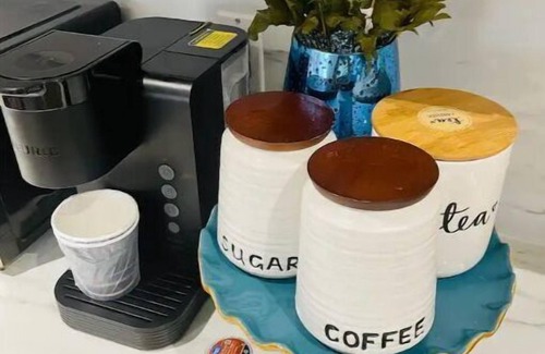 Beautiful brand new open concept kitchen is well equipped with pots and pans, dishes, modern induction stove, microwave, mini refrigerator and lots of cabinets for storage. Brand new Keurig Coffee maker (coffee pods, coffee mate are provided). Toaster and Water kettle are another amenities the place offers.