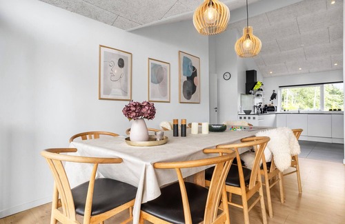 Welcome to this bright and tastefully furnished holiday home in a charming location close to beautiful forests and long sandy beaches. The modern and high-quality interior offers plenty of space and is also ideal for a holiday with two families. Look forward to harmonious meals in a bright and stylish atmosphere, organise cosy games evenings or enjoy a good film on the spacious sofa area.