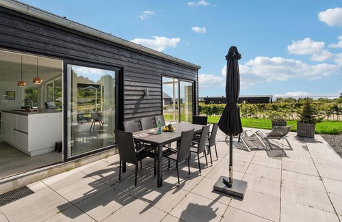 Welcome to the bright and inviting cottage near the water. Start your vacation morning with a cup of steaming coffee on the terrace, where you can also enjoy your breakfast while planning the day's activities. The house exudes quality and well-being, and care has even been taken to keep energy consumption as low as possible. The large kitchen is open to the living room and quickly becomes the meeting place of the family. From here you have a view of the Little Belt through the large windows, which also provide a nice light. Many entertaining hours await you in the activity room, including table soccer. After an active day in the fresh air, a relaxing bath in the large bathroom, which also features a double shower, is a delight. Or how about a relaxing walk in the barrel sauna on the terrace? If you were lucky on your fishing trip, you can clean your catch in the outdoor kitchen and gather for a delicious barbecue in the evening.