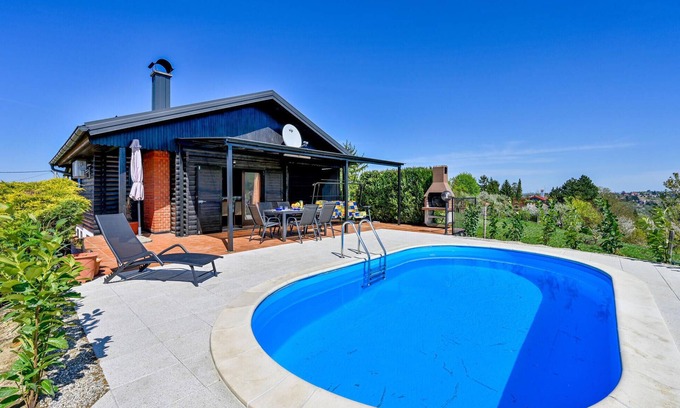 Beautiful wooden house with pool on a hill not far from Varadin.
