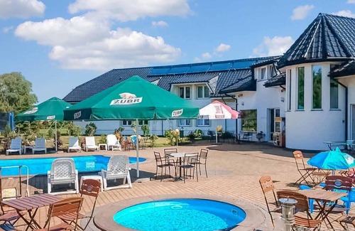 The accommodation is located on a shared and fenced property. The complex in which the holiday apartment is located offers many attractions for young and old. There is a communal swimming pool and a covered terrace where you can eat together in the evening and spend sociable evenings. Free parking on the property for two cars. Free WLAN in the holiday home.