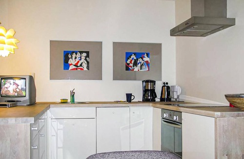 Architecturally interesting and modern equipped vacation home. It is very quietly situated on a large, fenced nature plot in a forest and field rich environment. The elegantly furnished house has a two-sided fireplace that invites you to stay and two wardrobes. This house is well insulated and suitable for a vacation all year round. The chic kitchen is open to the spacious living room. All the furniture is harmoniously matched and creates a special ambience. In the cottage you can admire many original paintings by Polish artists from the 60s and 70s. There is underfloor heating in the modernly furnished bathroom. The huge property is well maintained and offers plenty of space for outdoor activities and in the surrounding area there is possibility of water sports or cycling. The garden is surrounded by beautiful trees. In the town hall you will find the tourist information and an ATM. Distance to the center of Nowe Warpno with church of XIV years and town hall of XVII years old is 3 KM. There along lake runs beautiful promenade with town beach and lookout point. Riding school is located 12 km further.