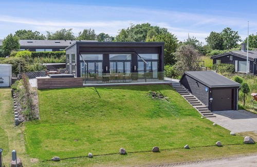 This modern holiday home with whirlpool is in a fantastic location on Saksild beach.