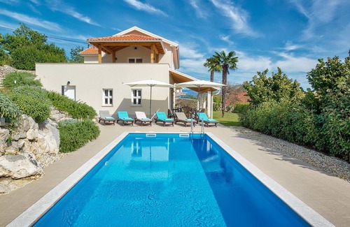 This beautiful villa is located near Opatija, the pearl of Kvarner Bay, and offers a magnificent view of the bay. The two-storey family villa has 4 modernly furnished bedrooms and can accommodate up to 8 people in total. The large, open-plan first floor consists of a living room with a comfortable sofa and a fireplace, a dining area and a modern, fully equipped kitchen with a cooking island. A double bedroom with en-suite bathroom is also located on the first floor and has direct access to the beautiful garden. On the upper floor there are 3 further double bedrooms, all with en-suite bathrooms. On the second floor there is a terrace, a particularly private place from which you can enjoy the wonderful sea view with a glass of Malvasia. The garden is the highlight of the villa, designed with great attention to detail. In front of the villa there is a large private pool and sun loungers where you can relax. Next to the pool is a barbecue area where you can prepare delicious meals on the charcoal grill and serve them to your family in the covered outdoor dining area. The villa offers many activities such as table tennis, table soccer and pool table, so you will certainly not be bored. Villa Pia is perfect for families and groups looking for a wonderful vacation and the best description for Icici and the whole Kvarner Bay is probably - breathtaking. Only 2 km from Opatija, the pearl of the Adriatic, and 18 km from Rijeka, after visiting this region it will be hard to go back home. Within a radius of 5 km you will find many different beaches where you can enjoy the warm