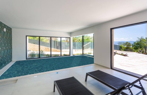 Spend an unforgettable time in this modern and spacious house, which welcomes you in a fantastic panoramic position overlooking the entire Kvarner Bay and the islands of Krk and Cres. Relax in a stylish ambience, elegant rooms with comfortable furnishings set the scene for your stay. Prepare a delicious dinner, enjoy the fantastic view through floor-to-ceiling windows, swim in the pool whatever the weather and relax together after an exciting day.
