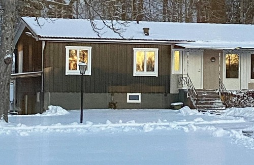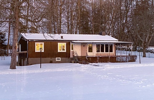 This cozy vacation home welcomes you and your loved ones for an unforgettable stay in the midst of beautiful nature. Only a few meters separate you from the refreshing waters of Lake Sjunnarydssjön, where you can not only enjoy a wonderful swim, but also excellent fishing. Get cooking in the kitchen and enjoy your meals in your vacation home with a view of the lake or outside on the terrace. There is plenty of space for fun games with the children in the large grounds.