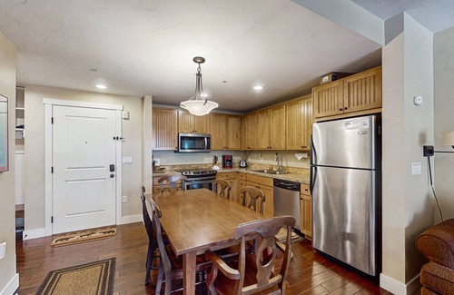 This one-bedroom condo is located at Base Camp One, our premier ski-in/ski-out property. This condo sleeps four people, offering a queen-size bed in the bedroom and a queen-size murphy bed in the living room. Gather for a movie around the gas fireplace or enjoy your morning cup of coffee on the private patio. The kitchen is fully equipped for preparing all of your favorite meals, and you can gather around your large dining room table to enjoy them!