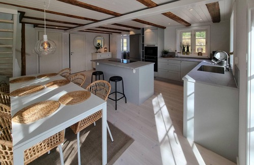 This beautiful vacation home exudes the feeling of vacation. Enter the house and dive right into this homey atmosphere. The vacation home is modernly furnished and will convince you with its Scandinavian design. The fantastic kitchen invites you to cook together and rewards you with beautiful views of the water. The great view you can enjoy almost from all rooms of the house and also can enjoy the sun, all day, on both terraces.