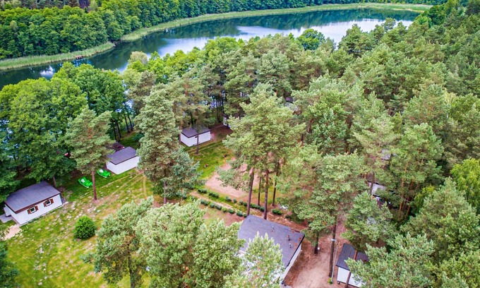 On a vacation resort in the quiet, peaceful expanse of the forest landscape near the Vistula you will stay in a practical little cottage and enjoy your vacation time. On the doorstep you will find swimming fun at the lake, plenty of space to play with the children, and above all a lot of nature.