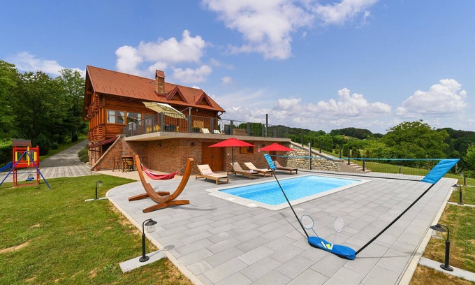 The house is not far from the spa town of Tuhelj, which has numerous entertainment options, indoor and outdoor pools and an aqua park. Children's and adults' hearts will beat faster here. If you prefer a quieter pace, you can walk directly from the house to the forest and explore the numerous cycling, walking and hiking trails in the area. You can also look forward to the surrounding restaurants and wineries with a wide range of gastronomic specialties and wines. Cultural excursions promise you beautiful castles in the surrounding area that are well worth a visit. Or you can spend a day in the vibrant capital Zagreb, which can be reached quickly by car.