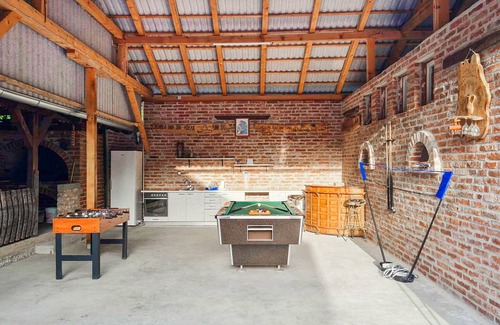 Welcome to this attractive vacation home, with its rustic accents and many activity options for an incomparable stay. The country-style kitchen offers you the opportunity to prepare a sumptuous breakfast in the morning and hearty meals later in the day. Dining together at the wooden table is also a very cozy experience thanks to the traditional wood-burning stove. Sports and games enthusiasts will get their money's worth in this vacation home. Inside, the inviting leisure room invites you to spend sociable hours. Show off your skills at the pool table and challenge the family to a game of table soccer. Outside, you can continue the sporting competition on the volleyball court. The beautiful pool and a whirlpool provide refreshment and fun for all ages. The covered veranda also invites you to enjoy the view of the surrounding nature while sipping a cool drink.
