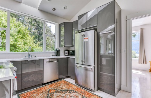Enjoy the vaulted ceiling that lets in lots of natural light and the open full kitchen equipped with new stainless steel appliances. Spend your evenings on one of the decks to watch the beautiful sunset over the mountain and take in the overlook of the mighty Columbia River. The breathtaking nature vistas only enhance your unforgettable stay. A wood stove and smart TV provide cozy home entertainment and the inviting bathroom is also equipped with a warming towel rack and heated floors for ultimate comfort.