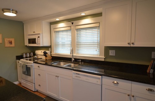 The house has 1940’s charm with many updated features including an all new kitchen. The large living room/dining room has wall to wall south facing windows taking in the magnificent views while brightening the house interior. There are three well furnished bedrooms upstairs and a full bath; one of the rooms has a king bed, one a queen bed, and the third a double bed along with a bunk bed. There are two small multi use rooms off the living room and the kitchen on the main floor along with a second bathroom (with a shower). On the north side of the house is a large screened in porch. There is a washer and dryer in the basement. The house is very nicely furnished with virtually everything a renter could reasonably want.