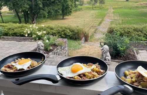 This Hallstavik country house/chateau boasts 10 inviting bedrooms with a mix of queen, king, twin, and bunk beds. The property features heating, a washing machine, and AC for your comfort. With 9 bathrooms, there's plenty of space for everyone to freshen up. We'll be available to answer any questions while you stay at our place.