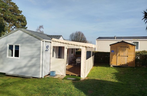 Guest accommodations at Lovely mobile home near the Sillon de Talbert, a unique site in Europe! offer coffee/tea makers and hair dryers. Rooms open to patios. Kitchenettes offer refrigerators, stovetops, microwaves, and cookware/dishes/utensils.