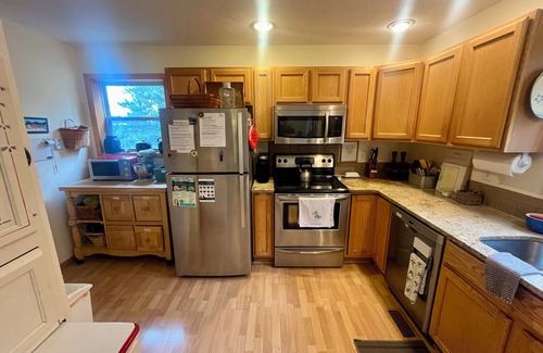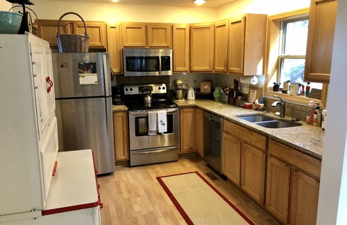 The kitchen has all the gadgets and cookware you could ever want for all your culinary needs & New stainless steel appliances.
