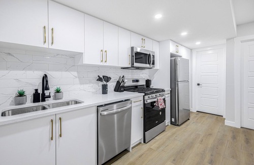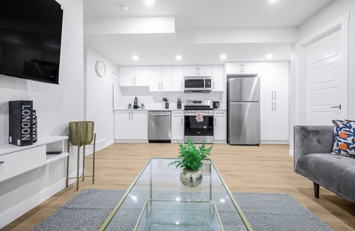 A stunning, newly constructed two-bedroom basement apartment, elegantly decorated, nestled in the peaceful neighborhood of Livingston N.E. Calgary. Enjoy the convenience of in-suite all in one laundry, a 58" smart TV with access to Netflix, Amazon Prime, and youtube. This lovely apartment is just 15 minutes from the airport and 20 mins away from downtown Calgary and a quick 5-minute drive to the Carrington shopping plaza. Key Features You’ll Love: