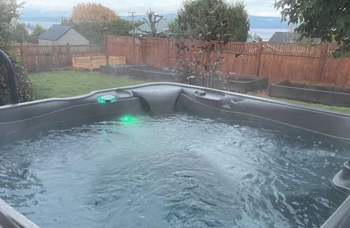 Kick back and relax in this calm, stylish space right near the ocean. With over 700 square feet, it feels spacious, yet cozy. Incredibly comfy king size luxury bed with 55 inch 4K TV for movie watchers. Netflix, Sports, books, board games and hot tub available. Gorgeous views of Osborne Bay and lovely boardwalk a few minutes away and world class mountain bike and hiking trails await. Saltspring Island is also just a short ferry ride away. Come and indulge for work, play or just a get away.