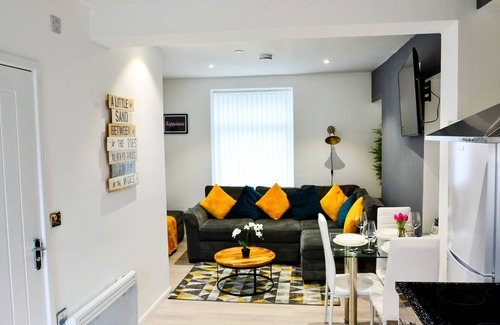 Lovely one bedroom flats with open plan lounge and kitchen with double French door decking outside sitdown area with parking right outside the doors space with stylish interior design only few minutes walk from town center and seaside