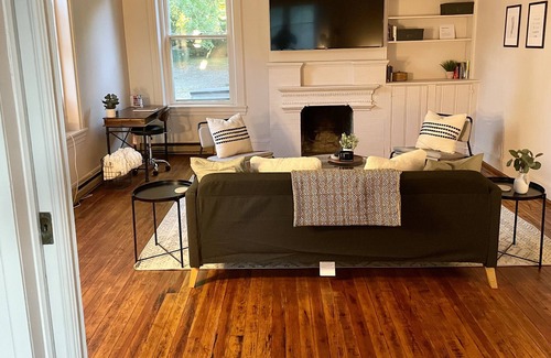 A peaceful getaway to relax, unwind, and feel at home away from home. This apt is spacious and bright with a modern style. Private guest entrance is in the rear of the main house, located in the heart of downtown Charles Town. Just park your car and walk to all the local restaurants and shops! Only 10 minutes from Historic Harpers Ferry. You will fall in love with this place.