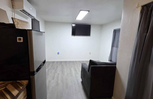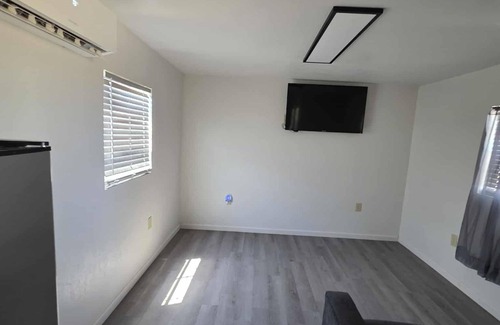 Carlsbad is waiting for you at this cozy 1-bedroom tiny house. The cozy bedroom features a comfortable queen bed, perfect for a good night's sleep. With heating and AC, you'll stay comfortable no matter the weather. The bathroom includes a refreshing shower. There is a small desk in the living room for your convenience. Enjoy all that Carlsbad has to offer when you stay at our place.