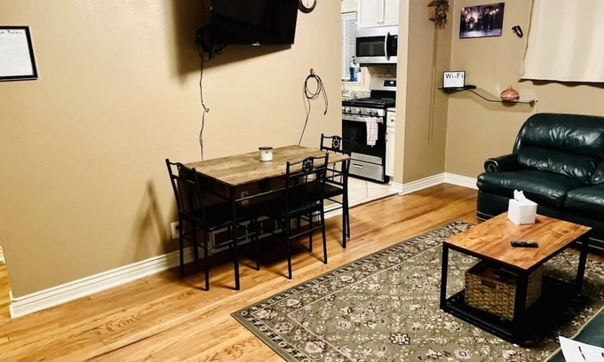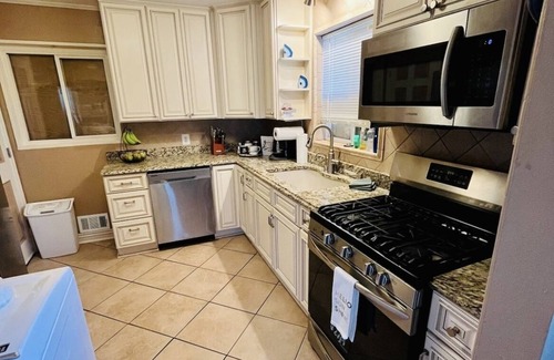 The kitchen has all the necessary cooking materials (Pots and pans, cooking utensils, cookie pans) and a gas stove for you to cook up some meals if you choose to do so. We also provide a selection of coffee, teas, snacks for your use. Any dry goods, condiments, and refreshments are free for you to use as well.