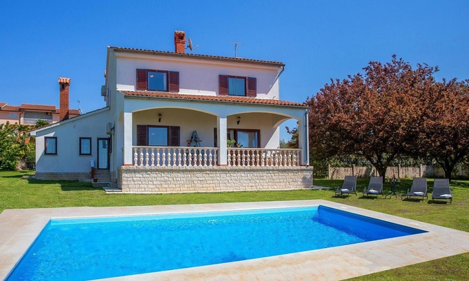 Gorgeous Villa Sabatti is located in a village Kukci, just 5 km from Porec. It has a well maintained large garden with a private swimming pool and a barbecue. From the property you have a panoramic view of the forest and meadows which are extended all around the area to the sea coast. On the ground floor of the house you can find a fully equipped kitchen with all the necessary cooking appliances, a family dining area, a toilet and a spacious living room with an exit to a large terrace with a seating garniture and a sea view. On the first floor, there are two bedrooms with double beds, one bedroom with two single beds and one bedroom with one single bed with a possibility to add an additional bed, and a bathroom with shower. The house also has air conditioning, private parking and Wi-Fi. Come to Villa Sabatti and spend a wonderful holiday with your family or friends.
