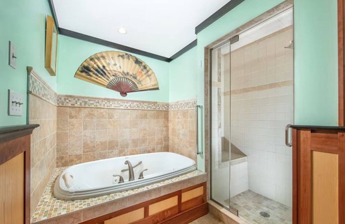 the house has lovely hand-crafted interiors, with lots of room for a large family on vacation and holiday. we can sleep 10, but we can make room for others with airmatresses in the yoga room next to the full sized gym...extra charge may be involved. . a heated, attached pool house with indoor pool, lawns, patio and gardens with firepit and barbecue. . .