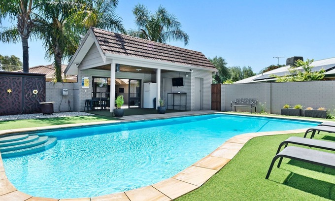 This 4 Bedrooms House provides accommodation with TV, Private Pool, Balcony/Terrace, for your convenience. This House features many amenities for guests who want to stay for a few days, a weekend or probably a longer vacation with family, friends or group. This House is less than 4 km from Mulwala, and gives visitors the opportunity to explore it. The rental House has 4 Bedrooms and 2 Bathrooms to make you feel right at home.
