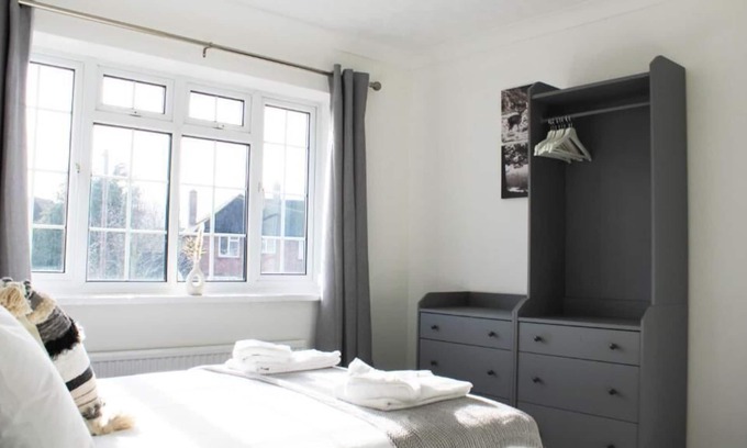 Low Cost, Fully Sanitised 5 Bed & Parking is located in Maidenhead. Low Cost, Fully Sanitised 5 Bed & Parking provides accommodation, featuring Laundry, Pet Friendly, TV, among other amenities. This House features Laundry, Pet Friendly, TV, to make your stay a comfortable one.