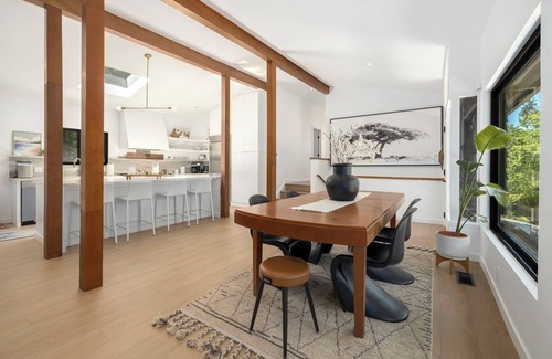 Experience luxury, nature, and convenience at The Lucille - a meticulously designed modern home that is filled with large windows and natural views. This architectural gem features 2 spacious living areas, a fully stocked kitchen, and accommodations for 8 guests! The inviting outdoor area boasts seating, a dining table, a fire pit, and a grill. At The Lucille, you are central to everything our vibrant city has to offer-just 2 miles to the University of Arkansas and Downtown Fayetteville!