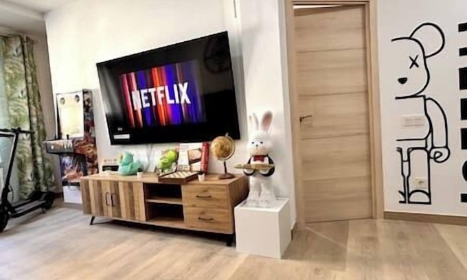 Dentro de dos habitaciones hay una TV de 43", en otra habitación de 32" y en el salón de 75", siendo todas ellas Smart TV y teniendo Netflix y Amazon Prime instalado cada una.